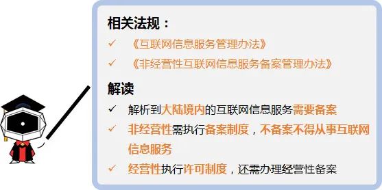 根據(jù)上述政策規(guī)定,解析至中國大陸境內(nèi)服務(wù)器的網(wǎng)站等服務(wù),必 須完成備案才可對(duì)外提供服務(wù)。